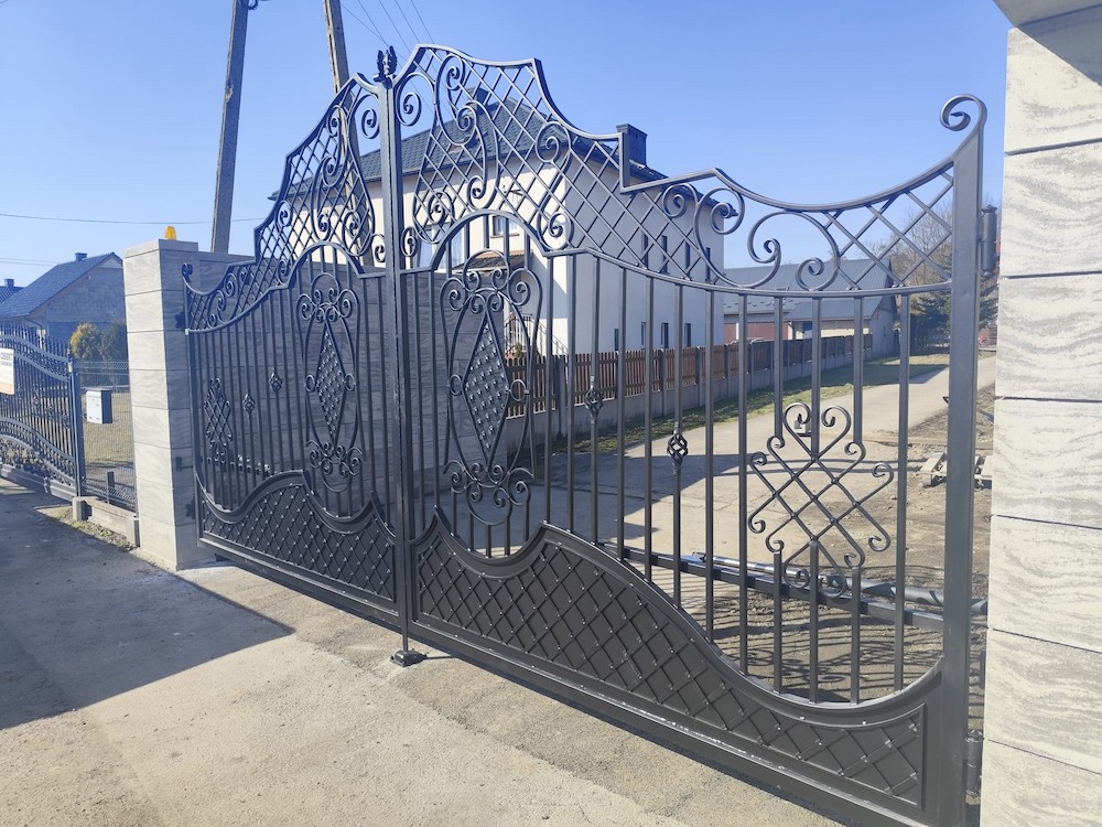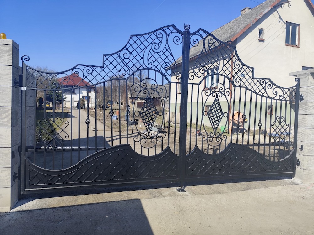 Brama wjazdowa, uchylna, kuta z ornamentami BU 117