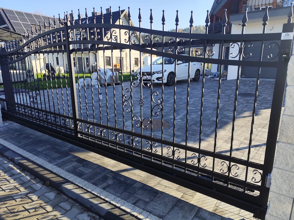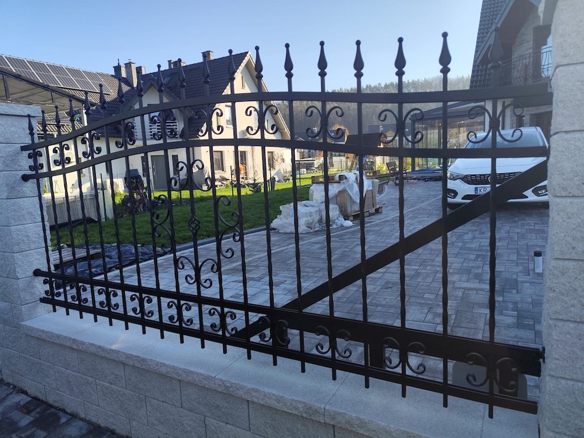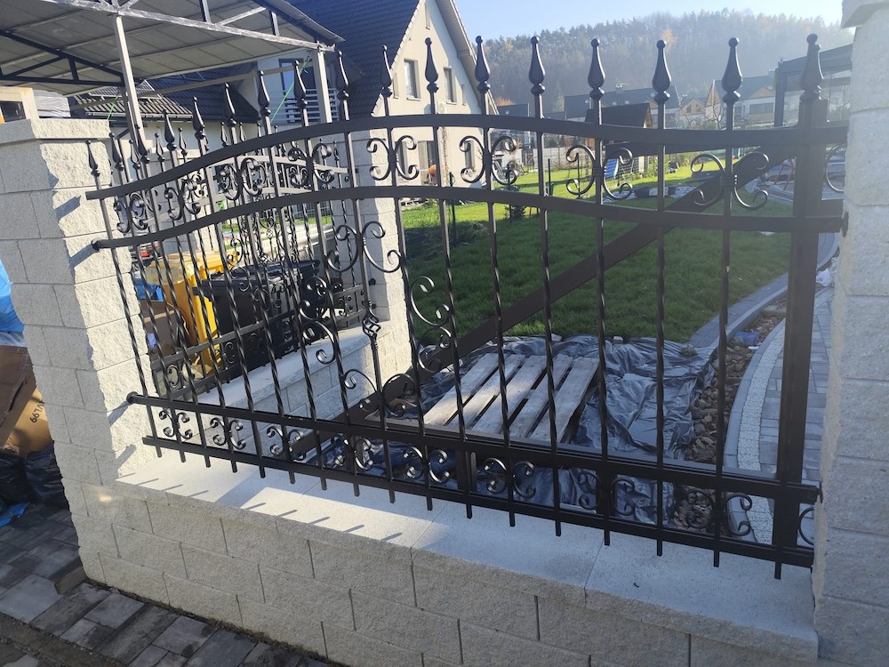 Ogrodzenie kute czarne z ozdobnymi ornamentami OK 062
